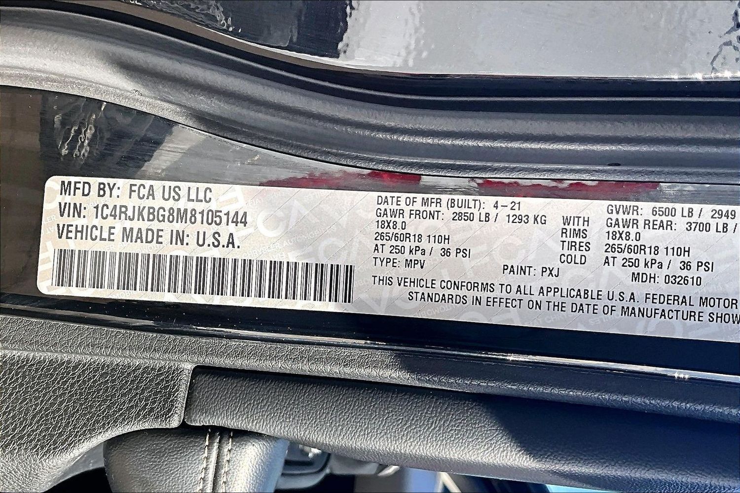 Front seatback upholstery: Plastic front seatback upholstery
